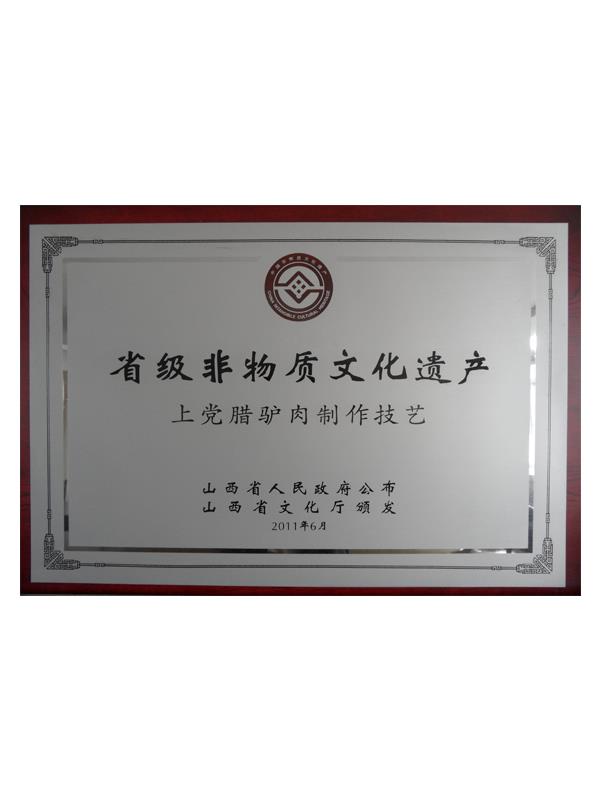《本草綱目》第五十卷記載有:“驢肉味甘、無毒、解心煩、止風狂、能安心氣、補血益氣、治遠年勞損”的作用,尤其對失眠、健忘、眩暈、營養(yǎng)不良、貧血癥有獨特療效。上黨臘驢肉是山西長治市的漢族傳統(tǒng)名吃,其肉質肥而不膩、瘦而不柴、香味四溢、回味無窮。早在明代,臘驢肉就已馳名于上黨和晉南地區(qū),產品遠銷北京、天津、南京等南北名城。臘驢肉與當地的涼粉、酥火燒被稱為潞安府(長治古稱潞安府)三寶。